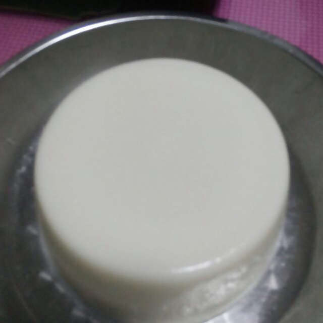 5煮好的椰汁放入一个大一点的盘里,自然至凉。(表面的泡要去掉,否则成品不好看,表面不干滑)